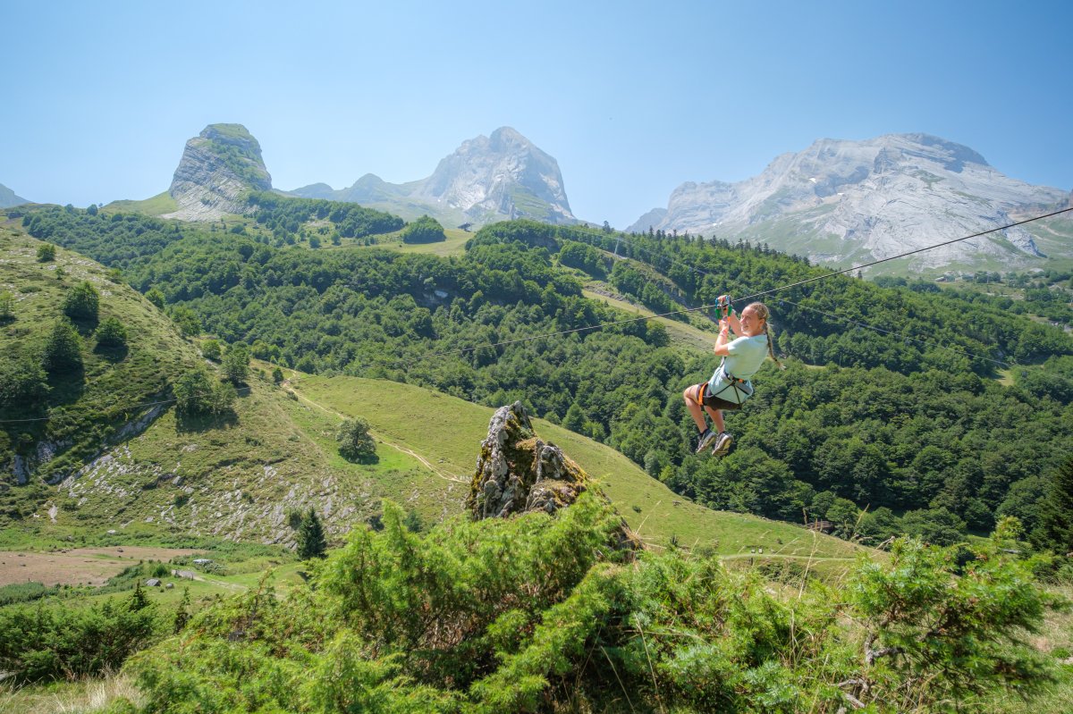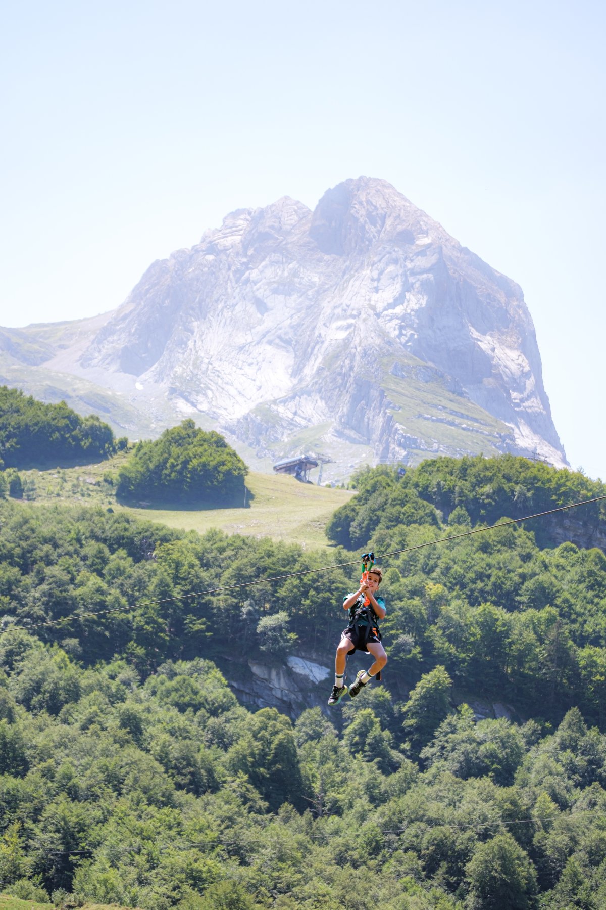 La tyrolienne géante de Gourette offre des sensations incroyables avec une vue imprenable. Aller simple de 200 mètres et retour de 200 mètres jusqu'au point de départ. En duo avec l'opérateur pour les enfants de moins de 8 ans.